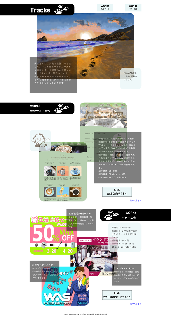 職業訓練校の講義終了前の課題として就学中に行った主要課題をWebサイトに掲載しました。